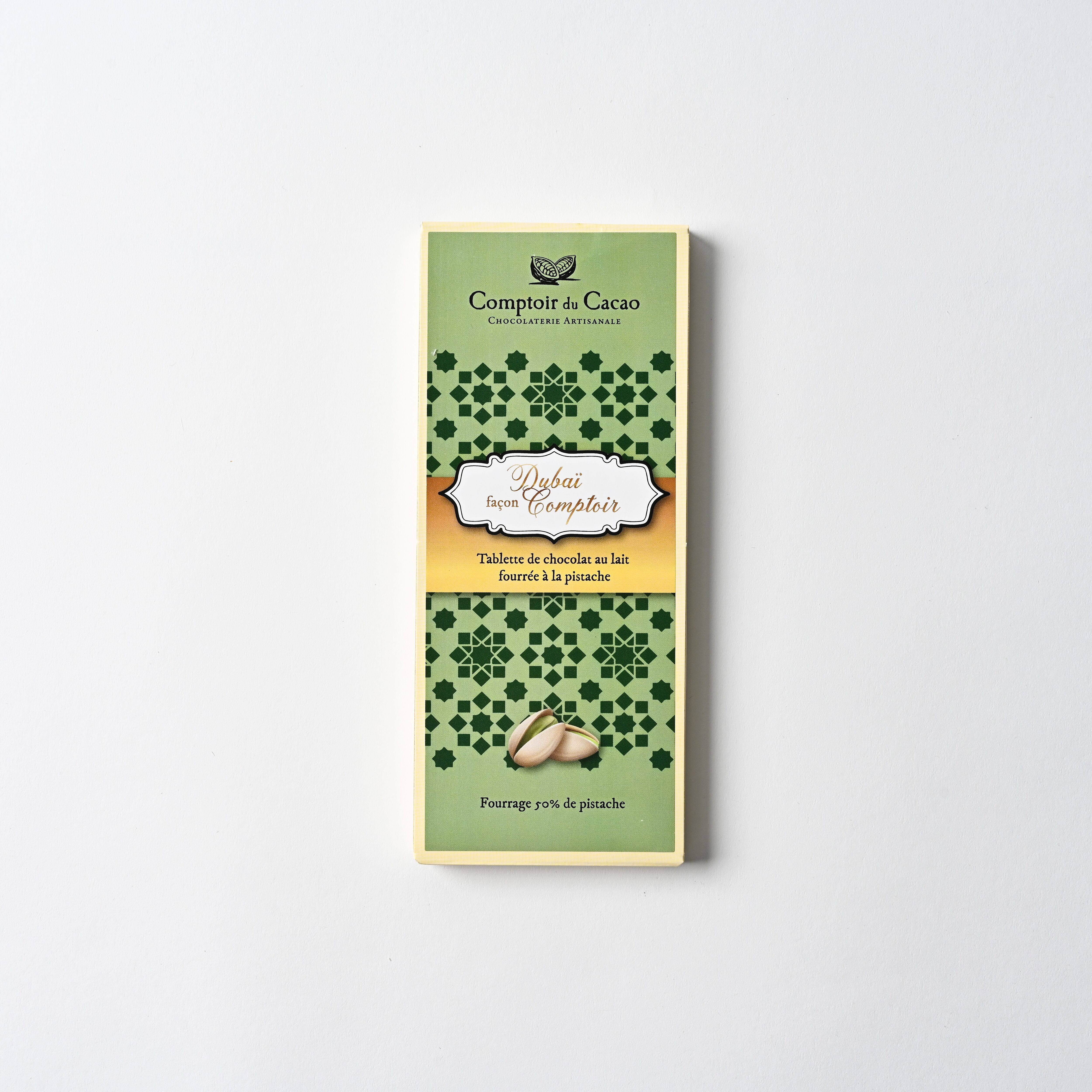 ピスタチオたっぷりのフィリングが贅沢に詰まったミルクチョコレート。